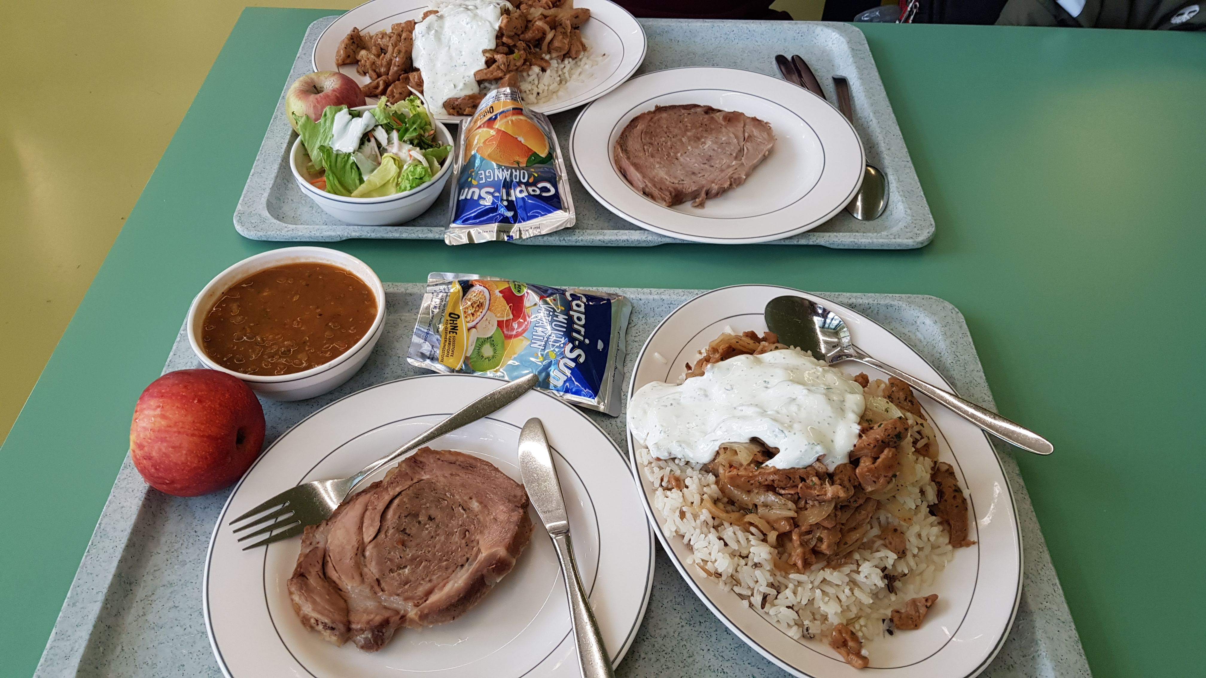 Oops, I should have warned you about the food porn earlier 😅. The food may not be glamorous but it tastes good, cheap and there is a huge variety of choices to choose from! All of our cafeteria meals cost at most 5€! To give an example, a meal at MacDonalds (burger + fries + drink) here costs about 8€! Eating at the Cafeteria is so worth it that we may actually end up eating there for the rest of our internship once it opens for dinner service 😂